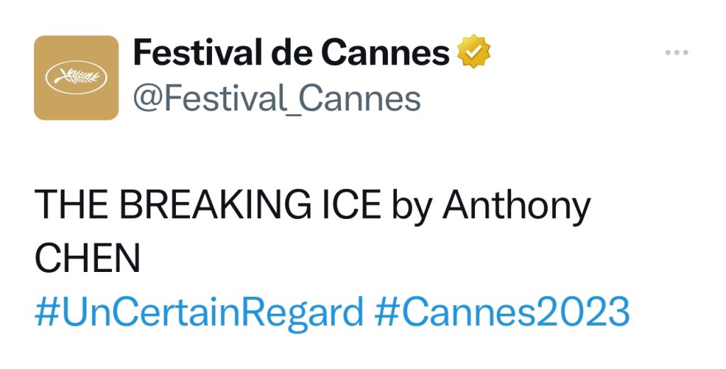 Bộ phim mới “The Breaking Ice” (Nhiên Đông) của đạo diễn người Singapore Trần Triết Nghệ đã được công chiếu tại hạng mục Un Certain Regard của Liên hoan phim Cannes lần thứ 76 vào ngày 21/05/2023, Châu Đông Vũ và Lưu Hạo Nhiên đã xuất hiện tại buổi ra mắt phim.