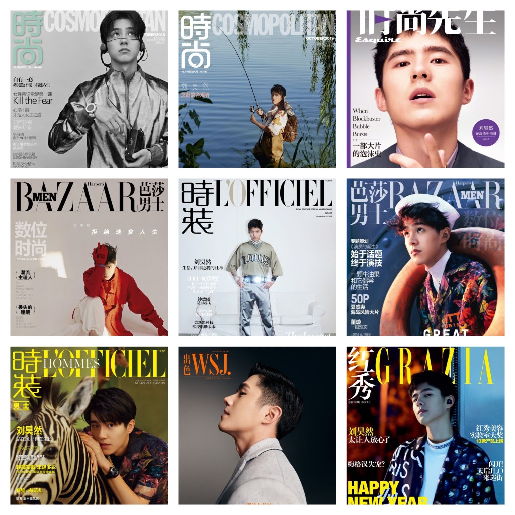 Trong quá trình hợp tác, Louis Vuitton đã đẩy nhiều bìa tạp chí cho Lưu Hạo Nhiên, trong đó nhiều bìa ngũ đại nam và ngũ đại nữ, ví dụ: