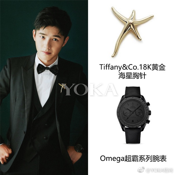 20200111 Lưu Hạo Nhiên tham dự sự kiện Đêm hội Weibo (Weibo Night) 2020, đeo cài áo hình cá thuộc dòng trang sức cao cấp High Jewelry của Tiffany & Co., nhẫn thuộc dòng sản phẩm Tiffany T của Tiffany & Co., đồng hồ Tom Ford.