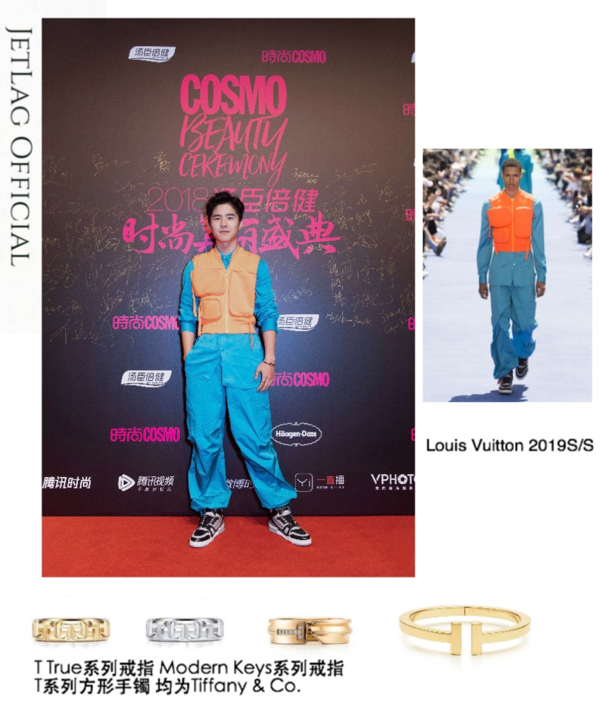 20181204 Lưu Hạo Nhiên tham dự sự kiện Cosmo Beauty, đeo trang sức của Tiffany & Co. bao gồm: vòng tay thuộc dòng T, nhẫn thuộc dòng T True, nhẫn thuộc dòng Modern Keys.