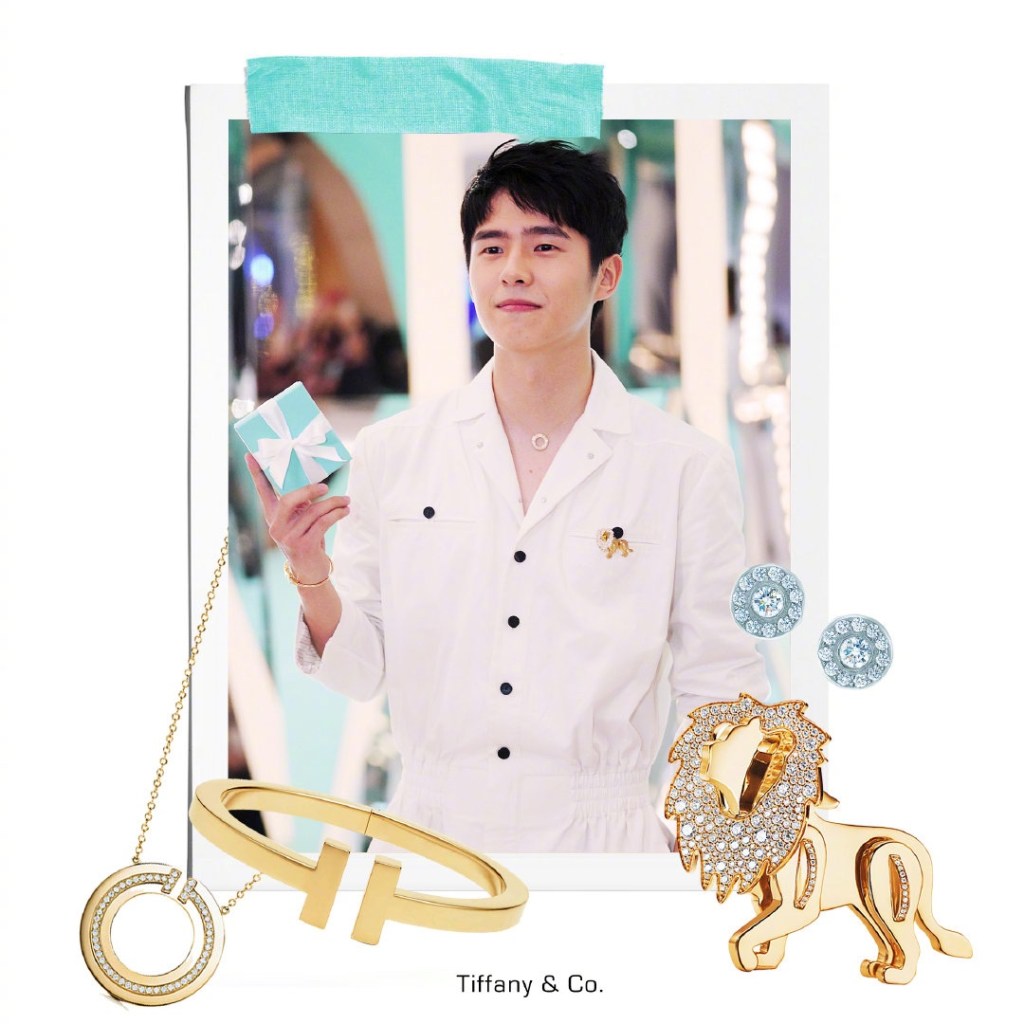 20191026 Đại sứ thương hiệu Tiffany & Co. Lưu Hạo Nhiên tham dự triển lãm “The Birth of Tiffany Diamonds” của Tiffany & Co., đeo trang sức của Tiffany & Co. bao gồm: cài áo hình sư tử bằng vàng hồng 18K gắn kim cương thuộc dòng trang sức cao cấp High Jewelry của Tiffany & Co., nhẫn và vòng cổ thuộc dòng sản phẩm Tiffany T Circle, vòng tay thuộc dòng sản phẩm Tiffany T. Trong sự kiện này Tiffany & Co. công bố chính thức Lưu Hạo Nhiên là Đại sứ thương hiệu Tiffany & Co.