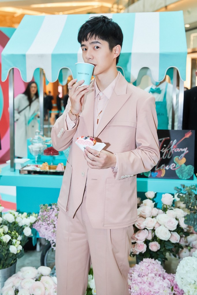 20190307 Lưu Hạo Nhiên tham dự sự kiện Tiffany Love Tour của Tiffany & Co. ở Thượng Hải, đeo trang sức của Tiffany & Co. bao gồm: nhẫn và vòng tay bằng vàng hồng 18K T True thuộc dòng sản phẩm Tiffany T, nhẫn và mặt dây chuyền hình chìa khóa bằng vàng hồng 18K thuộc dòng sản phẩm Tiffany Modern Keys, vòng tay bằng vàng hồng 18K T Two thuộc dòng sản phẩm Tiffany T.