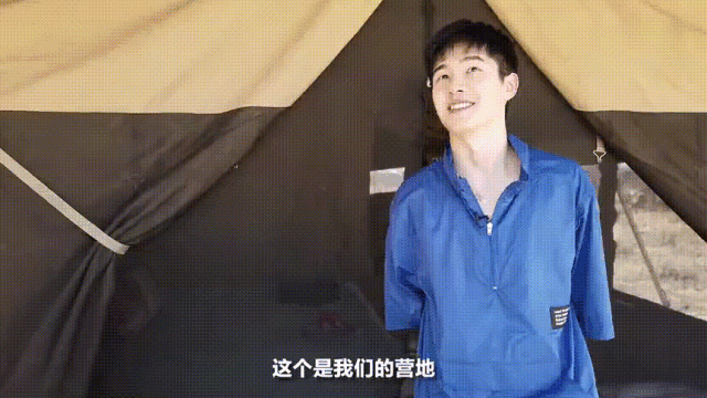 Ngoại trừ ngày đầu tiên, Hạo Nhiên đệ đệ không làm tóc chút nào, đội mũ lưỡi trai khi cậu ấy đi ra ngoài, mặc chiếc áo sơ mi rộng rãi màu xanh lam và quần màu vàng nghệ, rất có phong cách “sinh tồn nơi hoang dã.”