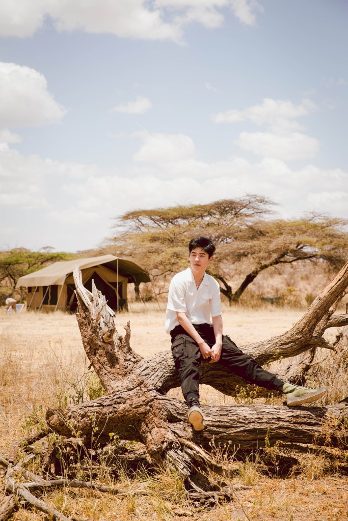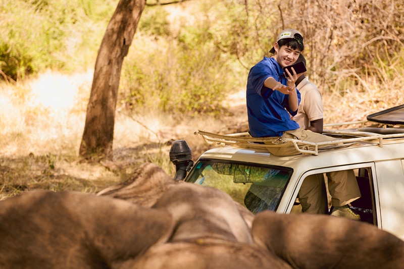 Tôi dành một chút thời gian để chụp một số bức ảnh khung cảnh xung quanh, và khi tôi quay lại, tôi phát hiện ra cậu ấy đã trèo lên một cái cây. Hãy dành một chút thời gian để hình dung khoảnh khắc đó: một thần tượng nổi tiếng (T/N: truyền thông Trung Quốc sử dụng thuật ngữ “thần tượng” khác với các đồng nghiệp Hàn Quốc và Nhật Bản – về cơ bản từ này có thể được dùng để mô tả bất kỳ ai nổi tiếng) chạy đến châu Phi và chỉ lặng lẽ trèo lên một cái cây. Tôi cảm thấy như thể cậu ấy đã trưởng thành ở nơi hoang dã vậy!