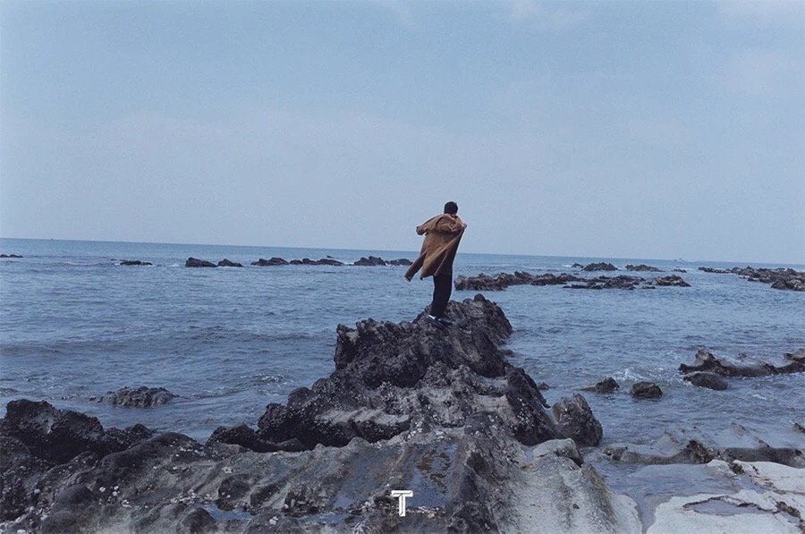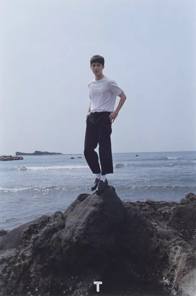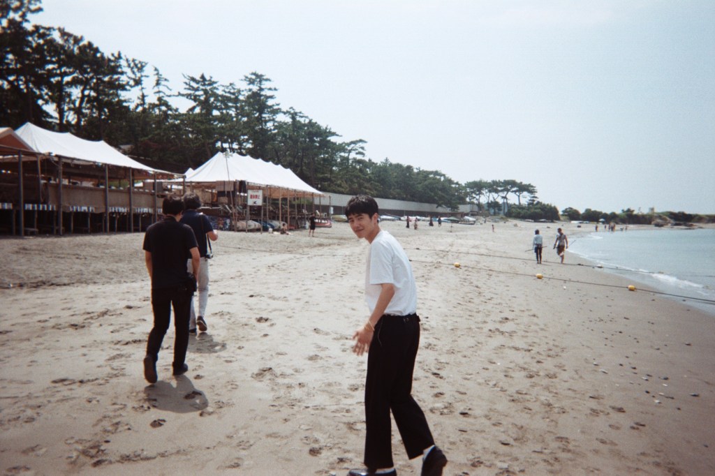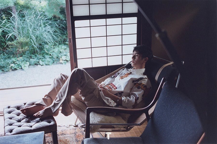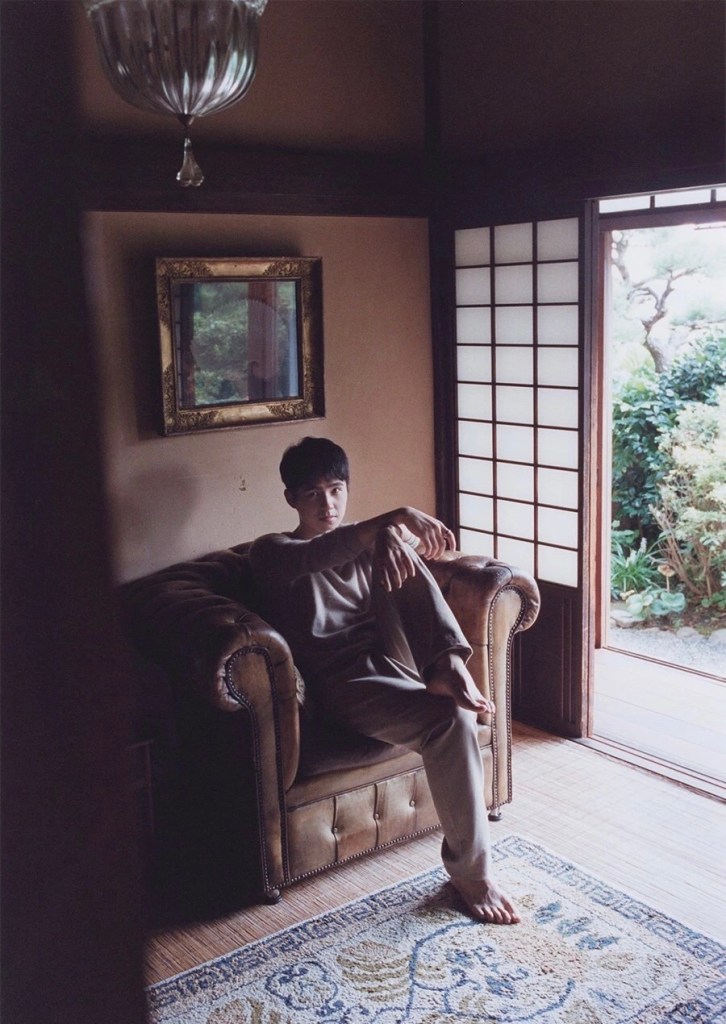 Lúc này là cuối mùa hè. Để phối hợp với yêu cầu từ phía tạp chí, cậu ấy tạm thời chào đón mùa thu sớm hơn một chút. Nhưng bên bờ biển, nhiếp ảnh gia Ueda gợi ý rằng vào lúc cuối cậu ấy nên cởi chiếc áo khoác nhung dài mà stylist đã chuẩn bị. Tiến một bước về phía trước và chào đón mùa thu trong ngày thì cũng tốt, nhưng mùa hè vẫn chưa hoàn toàn đi qua.