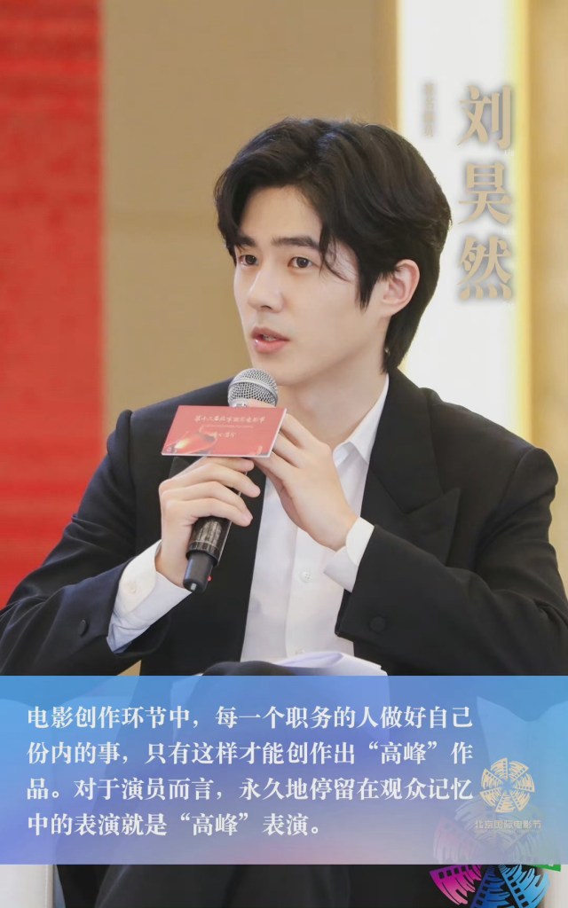 Đẹp trai và nổi bật giữa đám đông trong bộ vest đen bảnh bao, mái tóc hơi dài thể hiện khí chất trưởng thành, Lưu Hạo Nhiên với tư cách là đại diện cho các diễn viên trẻ, đã thảo luận với Hoàng Kiến Tân, Chương Tử Di, Lan Hiểu Long và các tiền bối khác về các tác phẩm điện ảnh “đỉnh cao” tại Diễn đàn Quyền lực Điện ảnh nằm trong khuôn khổ Liên hoan phim Quốc tế Bắc Kinh lần thứ 12.
